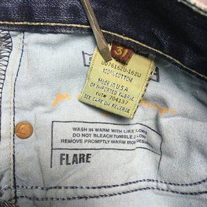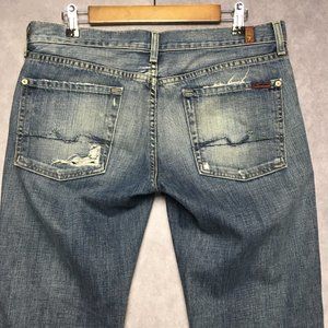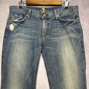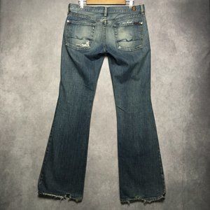 7FAM Womens Flare Blue Jeans - size 31 - 100% Cotton Distressed Made USA Denim