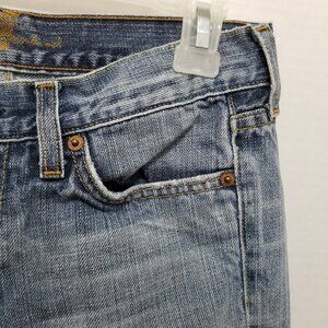 7FAM jeans 26 bootcut lightly distressed low rise 100% cotton denim whiskered