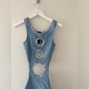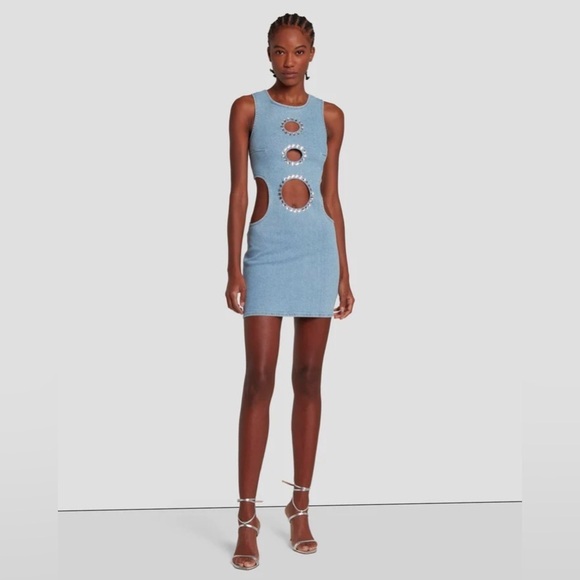 We teamed up with our favorite Fashion Editor Anna Della Russo to design this exclusive collab that celebrates high-octane glamour. This limited-edition racerback mini-dress makes a statement with its cutout design embellished with beautiful Swarovski crystals. Designed in luxe stretch denim, it features cutout back with a easy to wear zipper closure. Pair this denim dress with sparkly heels to bring a haute couture edge to this look!