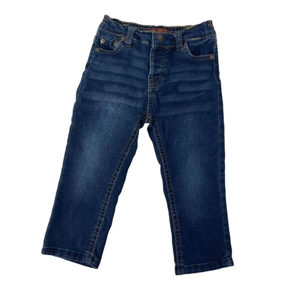 7FAMK Jeans Baby Size 18 Month Elastic Back Panel Snap Close 7 For All Man Kind Denim Blue Jeans Straight Leg Stretch Cotton Blend