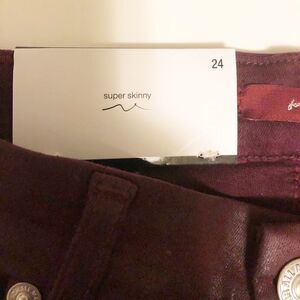 Super skinny 7 for all Mankind Jeans - coated Bordeaux color and style - BNWT. Ankle length. 27” inseam, 9” rise