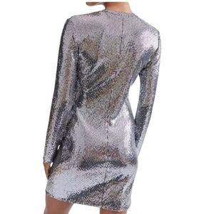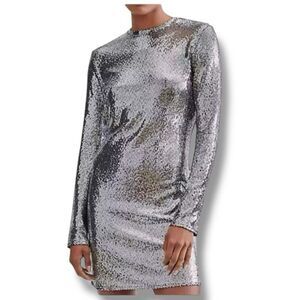 7 For All Mankind Dress XS Silver Metallic Sparkle Mini Club Long Sleeve Sequin Party Cocktail Vegas Birthday Date Night Out Valentines Day Sexy Sparkle Disco Ball Special Occasion Vacation