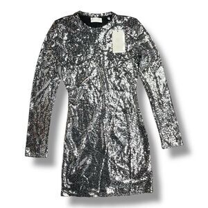 7 For All Mankind Dress XS Silver Metallic Sparkle Mini Club Long Sleeve Sequin