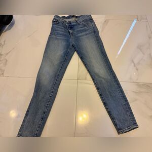 Chic light blue skinny jeans. Perfect for versatile styling. Comfortable fit.