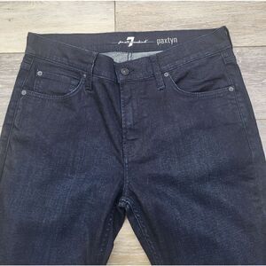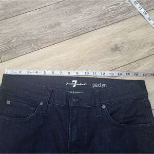 Introducing the 7 For All Mankind Paxton jeans: the dark blue wash that's anything but ordinary. These jeans are the epitome of style and comfort, offering a sleek and contemporary fit that's perfect for the modern man. With their versatile design and impeccable craftsmanship, these jeans will effortlessly take you from casual Fridays to weekend adventures. So why settle for ordinary denim when you can have the extraordinary? Upgrade your wardrobe with the Paxton jeans and make a statement wherever you go.