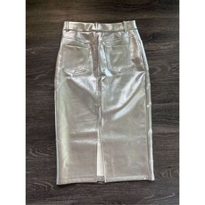 7 For All Mankind Silver Metallic Faux Leather MIDI Pencil Skirt Size Medium