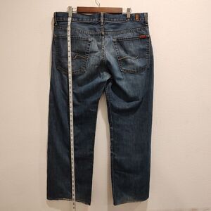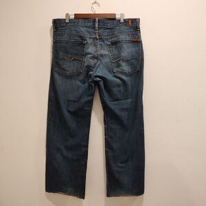 7 For All Mankind jeans, Relaxed fit, button-up fly. Men's size 36. Jeans have been modified. Please see attached picture that shows length.