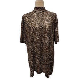 7. Frazier Lawrence Vintage Leopard Animal Print Short Sleeve Turtle Neck 2XL