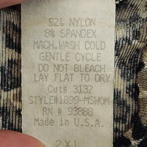 Made in U.S.A. 92% Nylon/ 8% Spandex