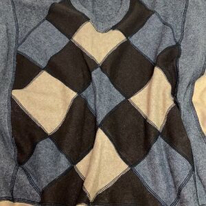This poncho is Homemade out of recycled cashmere sweaters to have an Argyle look. It is an excellent preowned condition, purchased from a local boutique for an excessive amount. Please see pictures for details and feel free to ask any questions if interested. This poncho measures flying flat approximately 36 inches wide and 28 inches long.