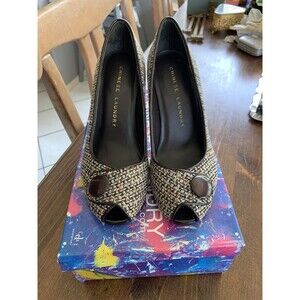 7M Chinese Laundry Cutie Open Toe Pump Tweed and Button Beige Women's Heels. Condition is "New with Box". Shipped with USPS Priority Mail.
