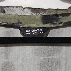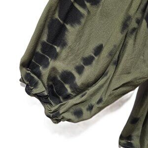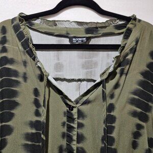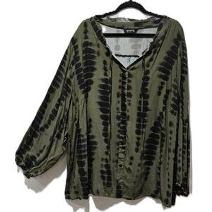 7Os RETRO OLIVE & DARK GREEN TIE DYE ¾ SLEEVE BUTTON DOWN BOHO TOP BLOUSE 4X