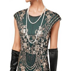 💚✨ 7PCS 1920s Great Gatsby Flapper Green Sequin Dress & Accessories Set 3XL NEW