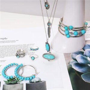 Boho Turquoise Jewelry Set – 13-Piece Vintage-Inspired Collection