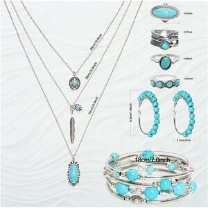 Bring your bohemian dreams to life with this **13-piece turquoise jewelry set**, featuring layers of vintage silver and stunning turquoise stones. Whether you're dressing up for a music festival, adding flair to everyday outfits, or accessorizing your Western style—this set has you covered!