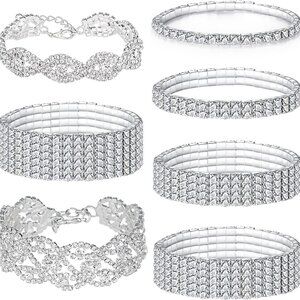 Features: This set includes 5 multi-stone tennis style bracelets and 2 chic rhinestone cuffs, all with a sleek box chain design. They’re lightweight, hypoallergenic, and the elastic stretch makes for a comfy fit. Wear them alone for a subtle shimmer or stacked for a glam effect — ideal for weddings, parties, or special occasions.