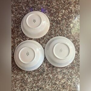One of the small bowls is chipped and has some discoloration shown in the photo.