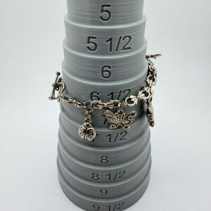 This bracelet should fit a size 7 wrist (according to my sizer) and has some really cute charms throughout.