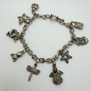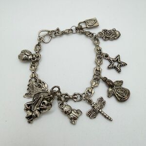 7" Silver tone charm bracelet with heart shaped toggle clasp!