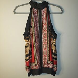 7TH AVENUE NEW YORK & COMPANY HIGH NECK HALTER TANK TOP BLOUSE SIZE SMALL