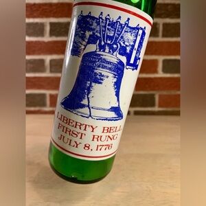 7Up Salutes Commemorative 1776 1976 Bicentennial Liberty Bell Green Glass Bottle