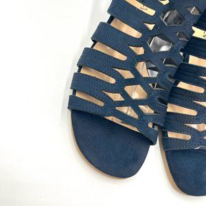7W 7 WIDE Bella Vita Womens Taresa Navy Blue Suede Cage Gladiator Sandals Shoes