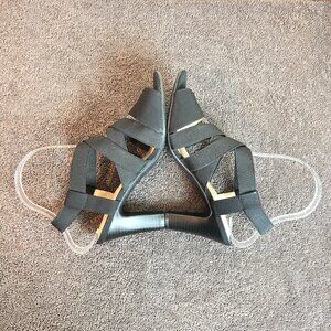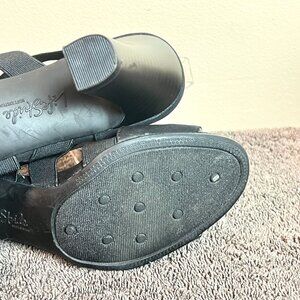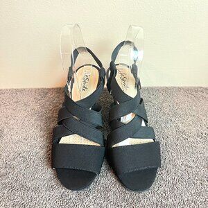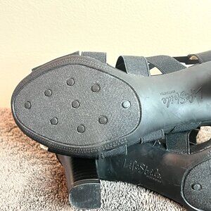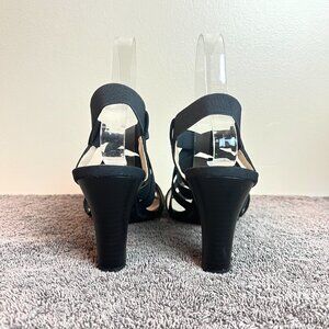 Life Stride women's Charlotte black strappy elastic open toe heels / sandals.