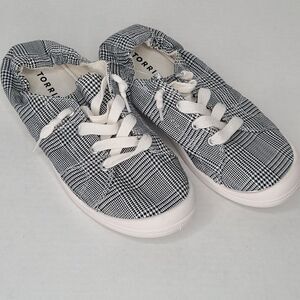 7W Torrid Riley Womens Rouched Sneaker Plaid Slip On Extra Wide Width Elastic ankle black white houndstooth plaid. NWOT Torrid. 10×13×1 1lb 3oz