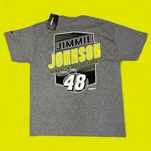 The product is a size XL shirt featuring Jimmie Johnson's Hendrick Motorsports team in the sport of auto racing, specifically NASCAR. The shirt is officially licensed and in gray color, making it a must-have for male fans of the driver and team. Perfect for showing support for both the driver and team during races or everyday wear.