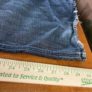 These jeans are in good used condition. The size is approximate, can not find size tag. Small holes in one back pocket as pictured.