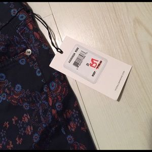 7 for all mankind printed mid rise skinny, super skinny jean. Brand new. Great material with stretch. Originally $198, still up for that price on Amazon. Navy color with red and periwinkle blue print.