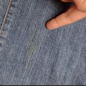 One stain I haven't attempted to remove on the leg & one side of bottom of jean has some fraying