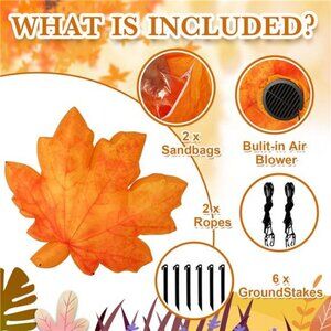 Thanksgiving Inflatables: the package contains 1 piece 7ft maple leaf inflatable with LED lights, 4 stakes, fixed rope, empty weighted bag, inflatable plug and blower, complete set brings convenience to make a fall decoration or a part of photo booth for harvest party, Thanksgiving, fall gatherings, family events, or charming storefront displays