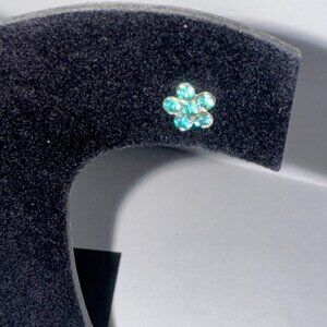 7mm Aqua Blue Flower Cz And Sterling Post Earrings