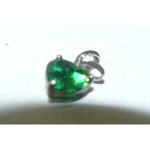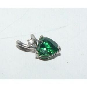 This is a lovely 925 sterling silver pendant with a 7mm emerald green heart as the main stone. The emerald green heart is prong-set and accented with a clear cubic zirconia. The pendant is signed BD and features a beauty and love theme. It is suitable for all occasions.