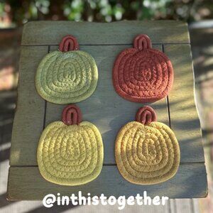 Prize 2: Set of 4 Handmade Knitted Pumpkin Crochet Coasters