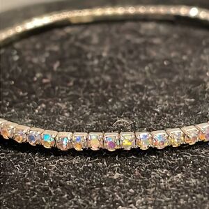 7” silver tone stackable stretch bracelet with 50 prong set Austrian crystals