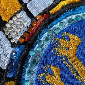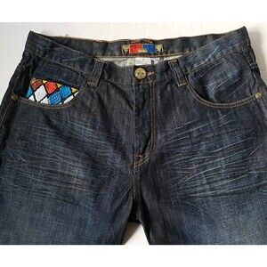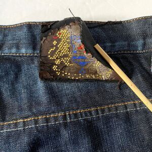 7th 38 Jean Shorts Men's Size 40 Blue Medium Wash Embroidered Gems Flaws Read