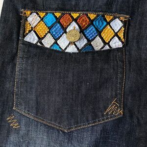 7th 38 Jean Shorts Mens Size 40 Blue Medium Wash Embroidered Gems Flaws Read