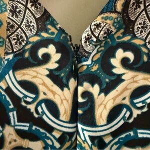 7th Ave Design Studio New York & Company Blue and Gold Patterned Peplum Blouse