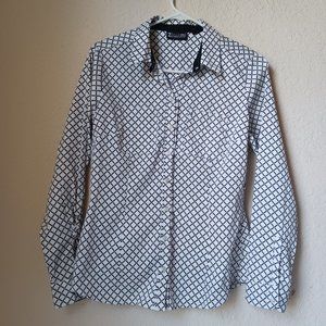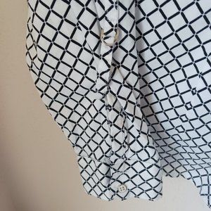 7th Ave New York & Co black and white button down, long sleeve collared blouse.