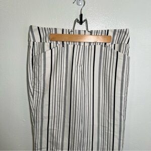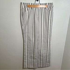 Great condition. 7th Avenue Suiting Collection New York & Company. Wide leg pants. Chino. White with gray and black stripes. Size 4. Missing material tag. Waist 15” Inseam 29.5” Front Rise 9”. All measurements are approximate and taken lying flat. Smoke free home. No trades, offers welcome.