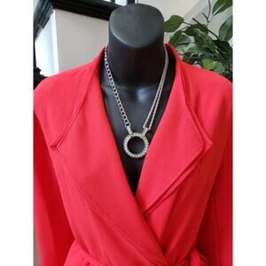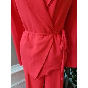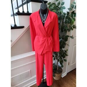 7th Avenue 2 Piece Suit Womens L/14 Red Pockets Slim Fit Notch Lapel Tie Waist
