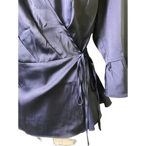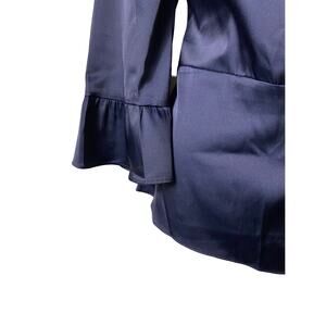 7th Avenue Blue Peplum Wrap Top Bell Sleeves Sz S ( 2517)