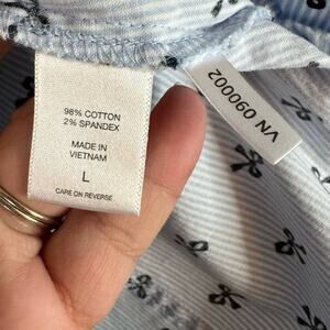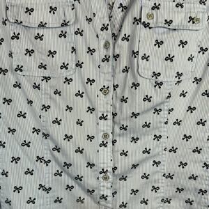 7th Avenue Blue Stripes & Bow Print Long Sleeve Button Up Size Large