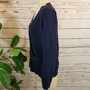 7th Avenue Cardigan Button Front Pocket v-neck Navy Sz Large #1050;