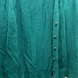 7th Avenue Design Studio Cardigan Sweater Green Knit V-Neck Button Front Sz XL