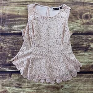 7th Avenue Design Studio New York And Company L Pink Floral Sleeveless Zip Up Blouse