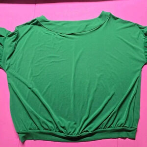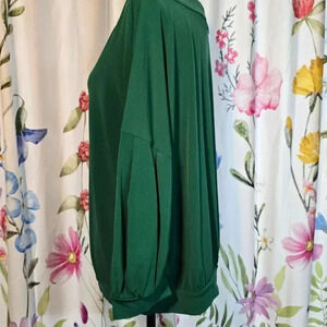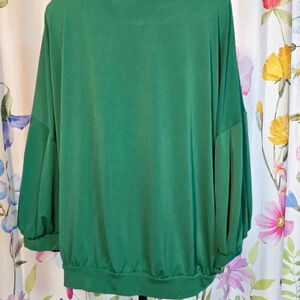 This designer blouse from 7th Avenue Design Studio New York & Co is a must-have for any fashion-forward woman. The stretchy banded hem and bell sleeves provide both comfort and style, while the scoop neckline adds a touch of elegance. This blouse comes in a beautiful green color and is made from a blend of polyester and spandex, making it both durable and comfortable to wear. The blouse is available in size XL and is perfect for any occasion, whether it be a casual day out or a formal event. Perfect for a holiday party.