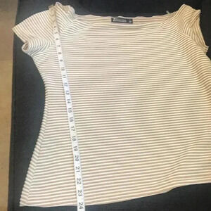 7th Avenue NY & Co Tan and White Draped Neckline Horizontal Striped Top-XL